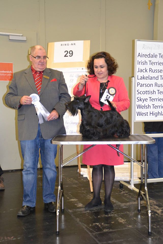 Jugendchampion Schweiz Züchter: Raoul Le Pelletier (F); Besitzer: Tiziana Laperrousaz (F) Tatuin Tomiko Spanischer Jugendchampion; Champion Spanien Züchter & Besitzer: Alejandro Frontera (E), Tatuin Kennel Tatuin Takashi Spanischer Jugendchampion Züchter: Alejandro Frontera (E), Tatuin Kennel Besitzer: Gergana Mircheva Evita Katullus Klubjugendsieger 2015 Züchter & Besitzer: Anna Swoboda Wojdyla (D); Zwinger "Katullus" (D) Fortuna Feeria Bellissima Invincibile Benelux Junior Winner; Deutscher Jugend Champion VDHDeutscher Jugendchampion KfT; Deutscher Champion KfT; Deutscher Champion VDH Internationaler Champion Züchter & Besitzer: Ellona Kujat (D); Zwinger: "Fortuna Feeria" Fortuna Feeria Flash Royal Champion Schweiz Züchter: Ellona Kujat (D); Besitzer: Edin Kosovac Mandowal Call For Tonya Wire Jugendchampion Rumänien Züchter: Andrei Matei-Borchin (Rumänien) Besitzer: Adrian Birgean (Rumänien) Paisley Finnlay Finnlay läuft sehr erfolgreich im Agility !! siehe: http://www.scotties.ch/unsere-scotties/finnlay/ Foto: Dalia Fichmann; http://creative-art-view.com